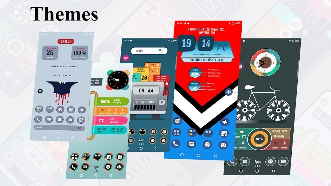 Clock, weather information, memory analyzer, music player, voice assistance, phone widgets and battery widget is available in thislauncher .